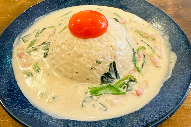 (龍の卵、味噌汁、小鉢、セットドリンク)